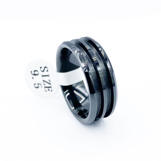 5 Pack Black Ceramic Double-Channel Ring Blanks